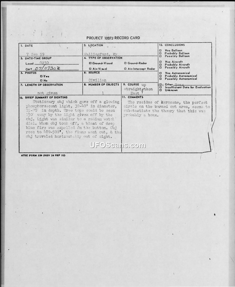 Project 10073 Record Card — Wallingford, Kentucky, 7 September 1959