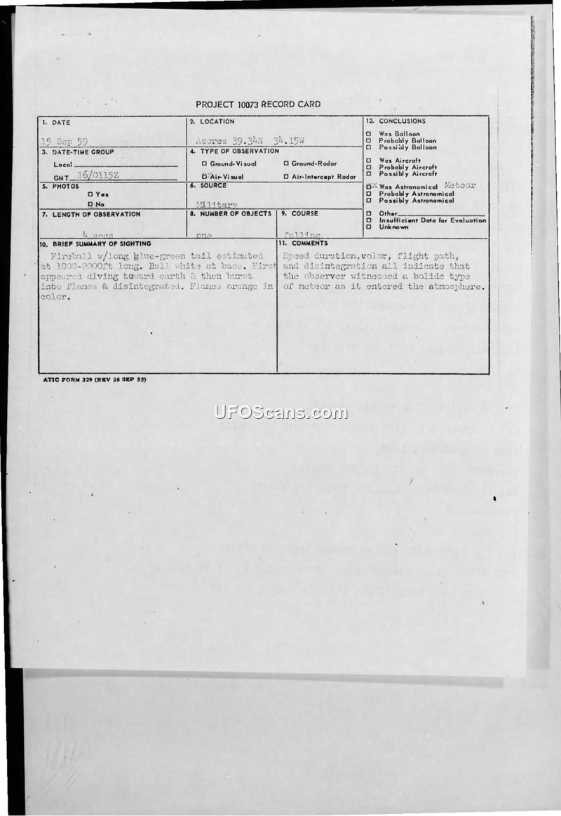 PROJECT 10073 RECORD CARD - 15 SEP 59