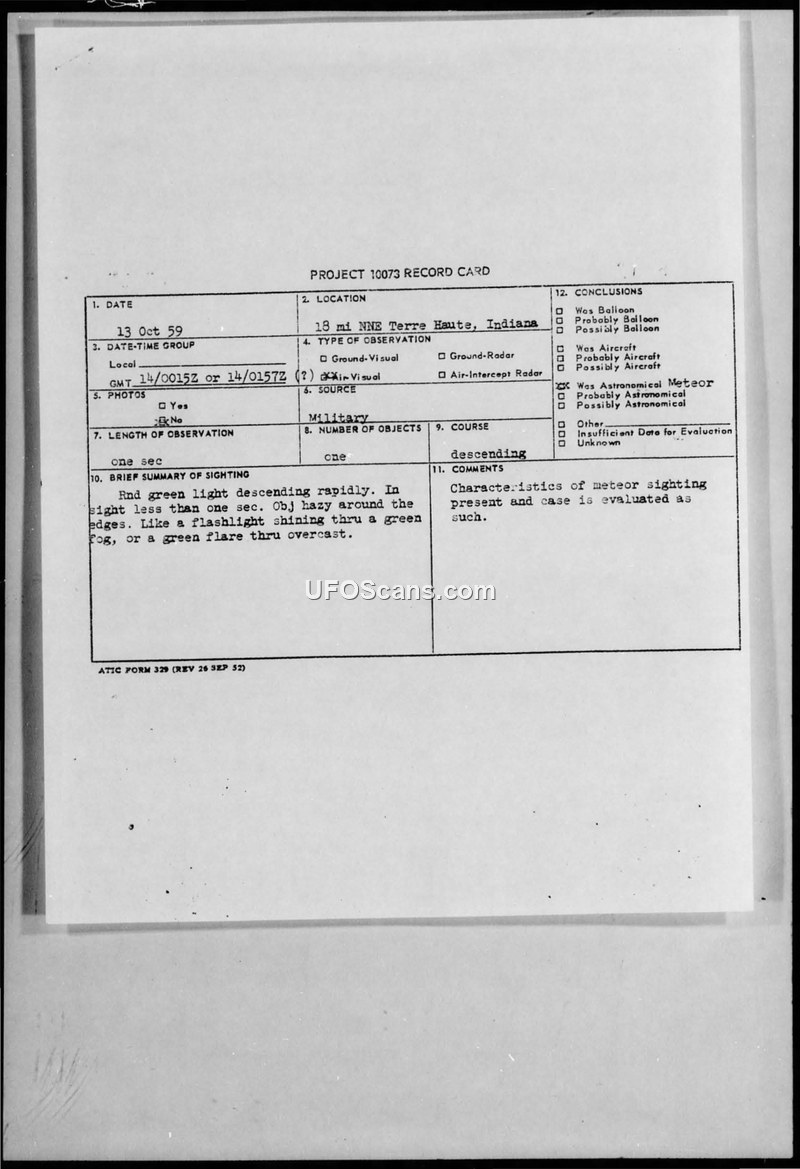 Project 10073 Record Card — 18 mi NNE Terre Haute, Indiana, 13 Oct 59