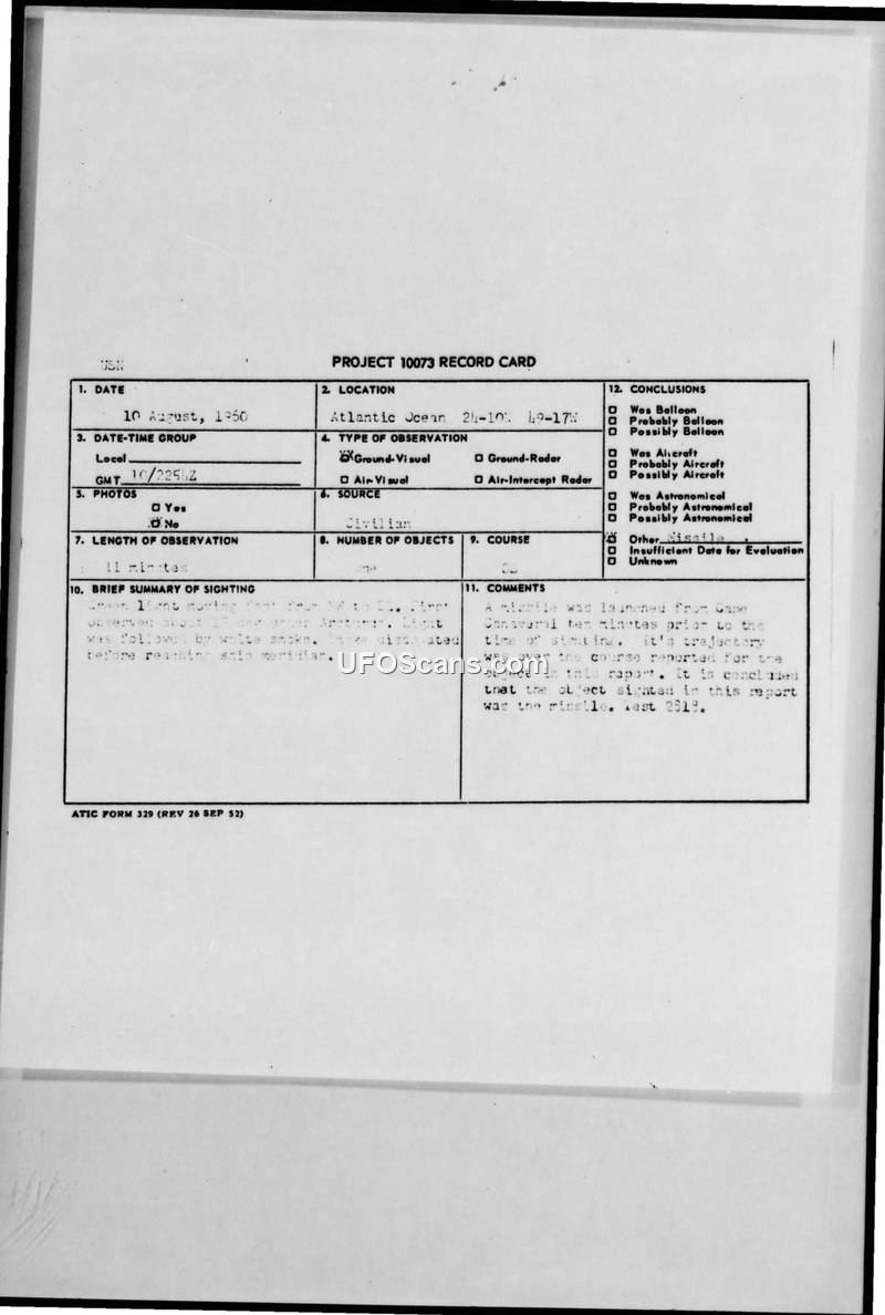 PROJECT 10073 RECORD CARD - Sighting of 10 August 1960