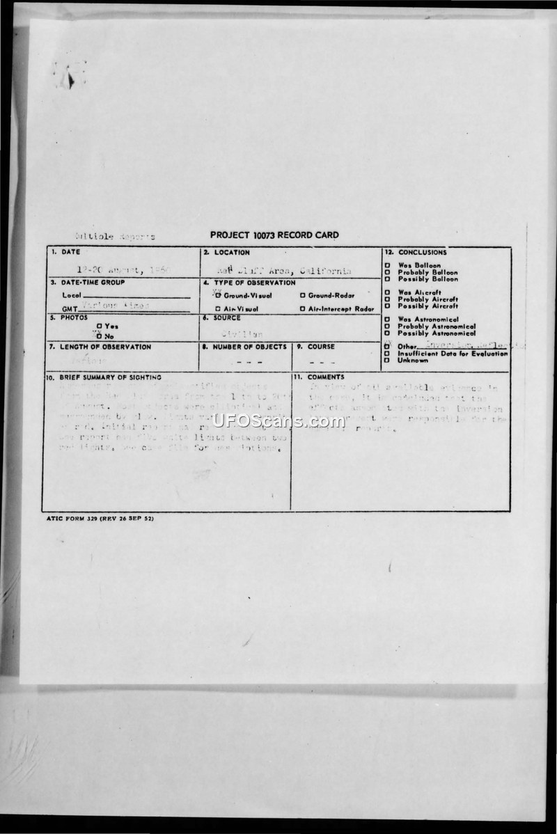 Project 10073 Record Card and Air Intelligence Information Report — Red Bluff, California, August 1960
