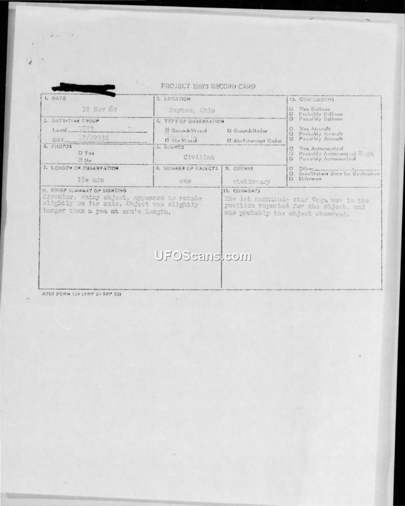 Project 10073 Record Cards and Related Correspondence — Dayton, Ohio, November 1960
