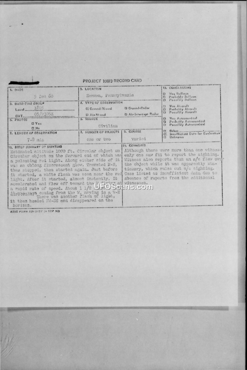 Project 10073 Record Card — Herman, Pennsylvania, 5 Dec 60