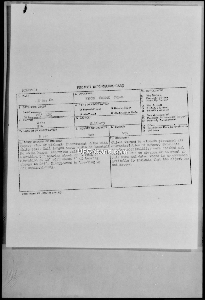 Project 10073 Record Card — 6 Dec 60 Sighting