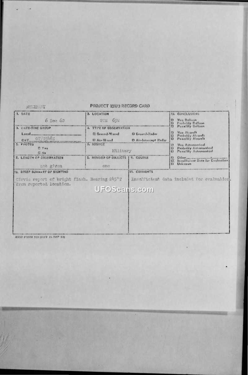 Project 10073 Record Card — 6 Dec 60
