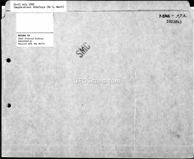 This document collection details the Air Force's response to Congressional pressure regarding the investigation of Unidentified Aerial Phenomena (UAP) in 1960. Following briefings held in July 1960 for members of the House Armed Services Committee, the House Space and Astronautics Committee, and the CIA, Mr. Robert Smart of the House Armed Services Sub-Committee expressed dissatisfaction with the Air Force's limited investigative capability. He argued that the Air Force should possess both the personnel and funding to conduct in-depth investigations into sightings of special significance.