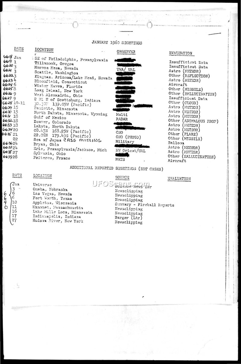 UFO/UAP Sightings Reports — January to December 1960