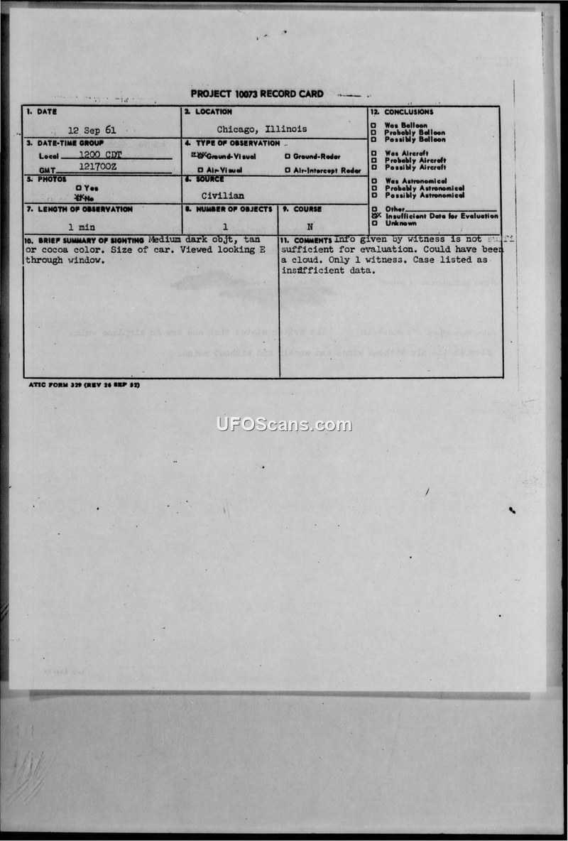Project 10073 Record Card — Chicago, Illinois, 12 September 1961