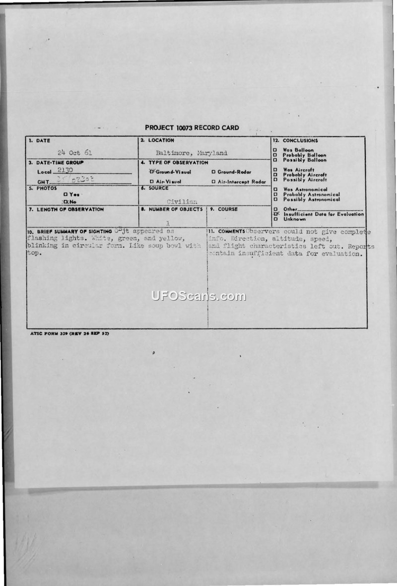Project 10073 Record Card — Baltimore, Maryland, 24 October 1961