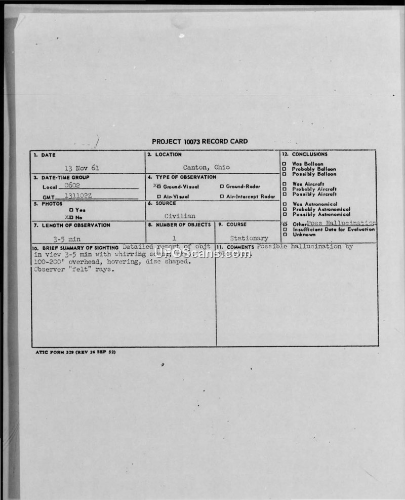 Project 10073 Record Card — Canton, Ohio, 13 November 1961
