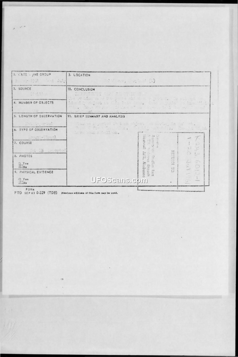 A citizen wrote to the Department of Defense in 1961 to report a sighting of a large white object in the sky over Baltimore. The document includes the original letter and an associated, largely blank, military sighting report form.