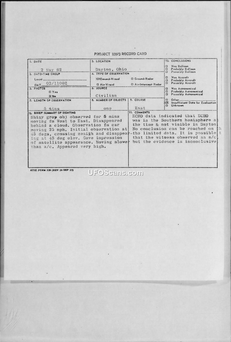 Project 10073 Record Cards — Dayton, Ohio (May 1962)