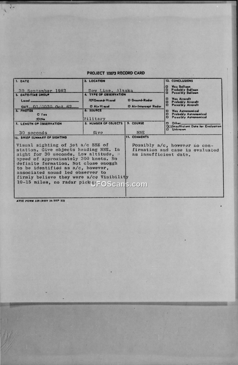 Project 10073 Record Card — Dew Line, Alaska, 30 September 1962