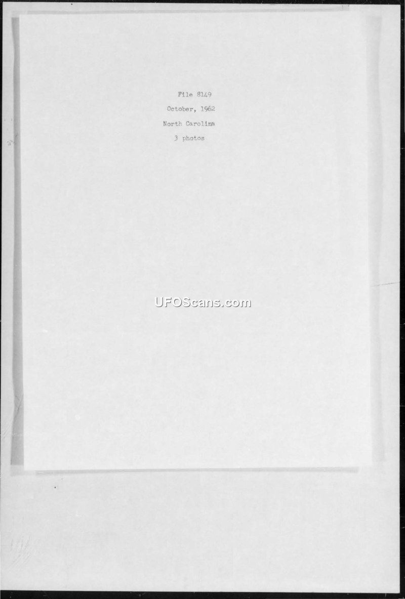 This document, identified as File 8149, consists of a brief cover sheet and three photographs of a mountainous landscape in North Carolina, dated October 1962. The materials were processed by the Foreign Technology Division of the Air Force Systems Command (AFSC). The photographs depict a rural, hilly, or mountainous terrain. No specific incident details, witness reports, or analytical conclusions are provided within the document beyond the file number, date, location, and the mention of the three photographs.