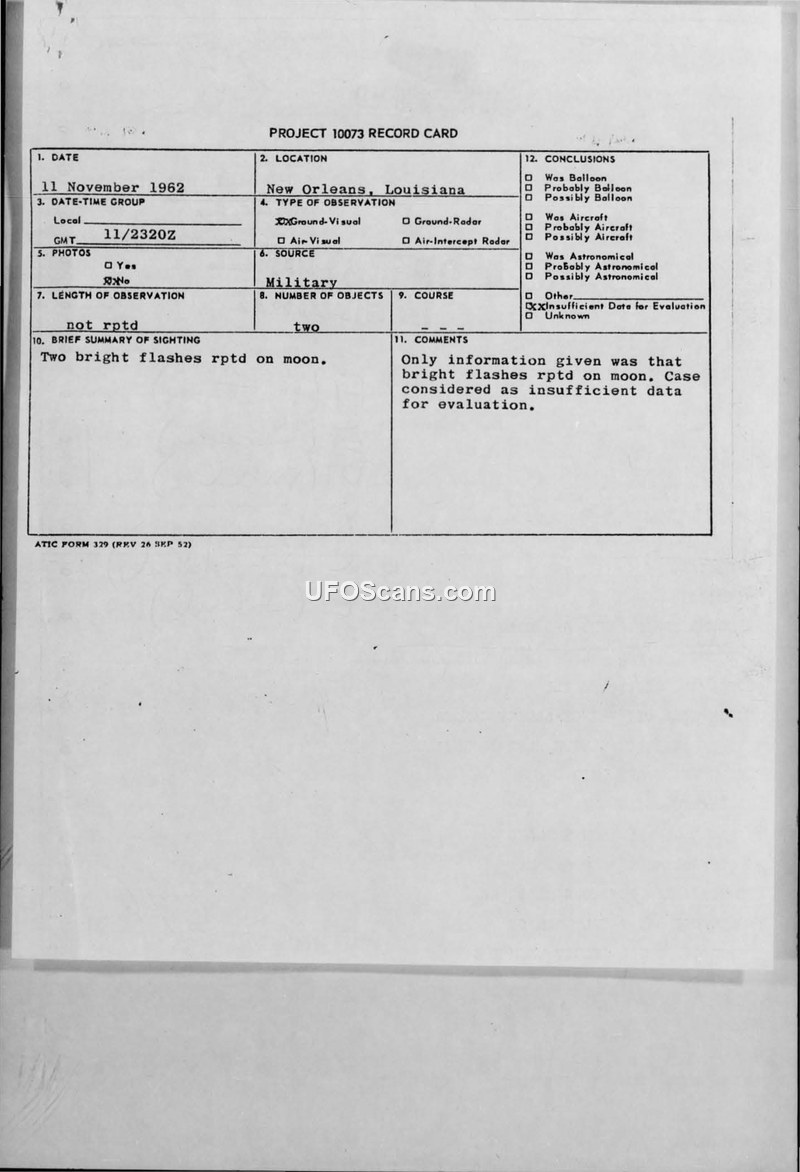 Project 10073 Record Card — New Orleans, Louisiana, 11 November 1962