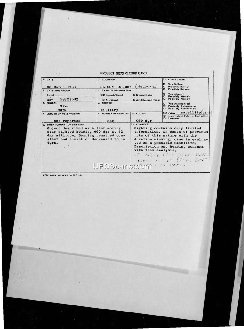 Project 10073 Record Card — 28 March 1963