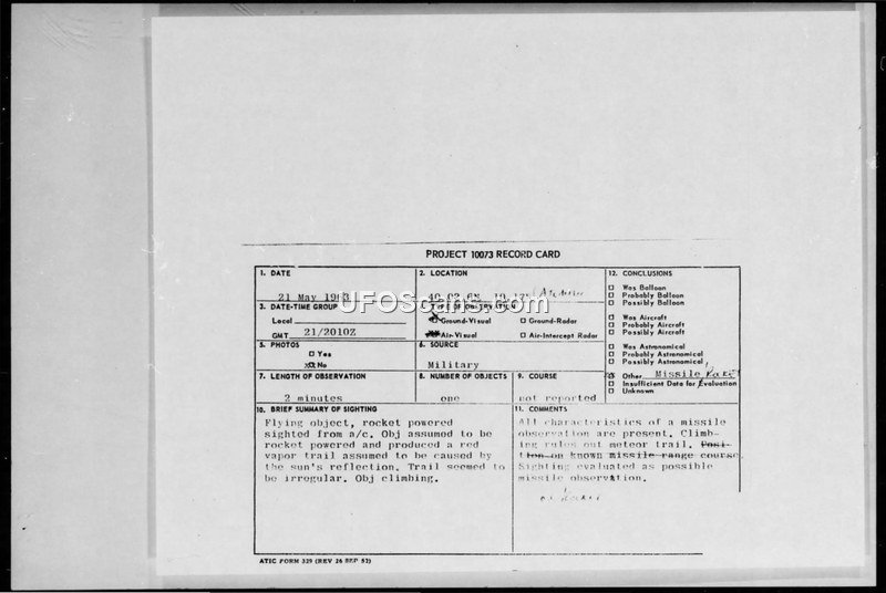 PROJECT 10073 RECORD CARD - 21 May 1963
