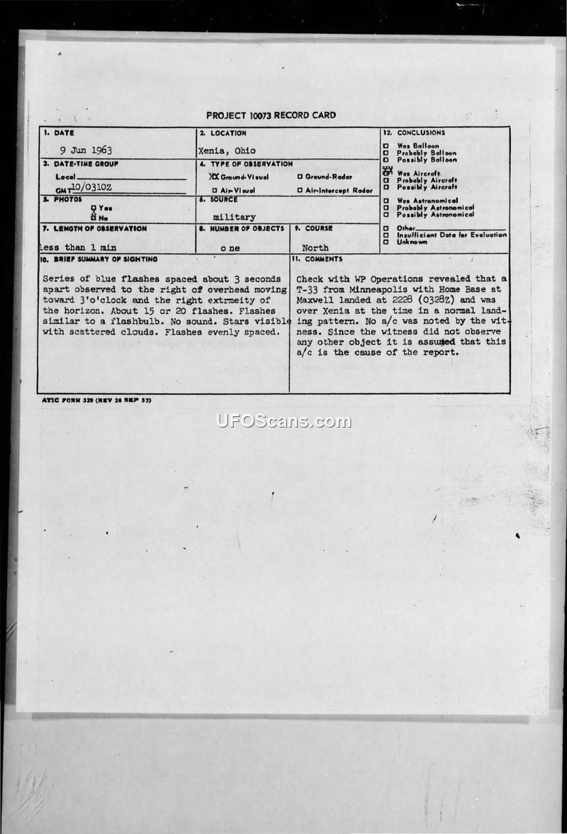 Project 10073 Record Card — Xenia, Ohio, 9 June 1963