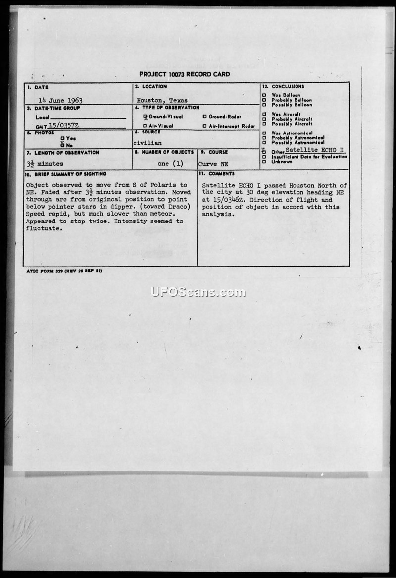 Project 10073 Record Card — Houston, Texas, 14 June 1963
