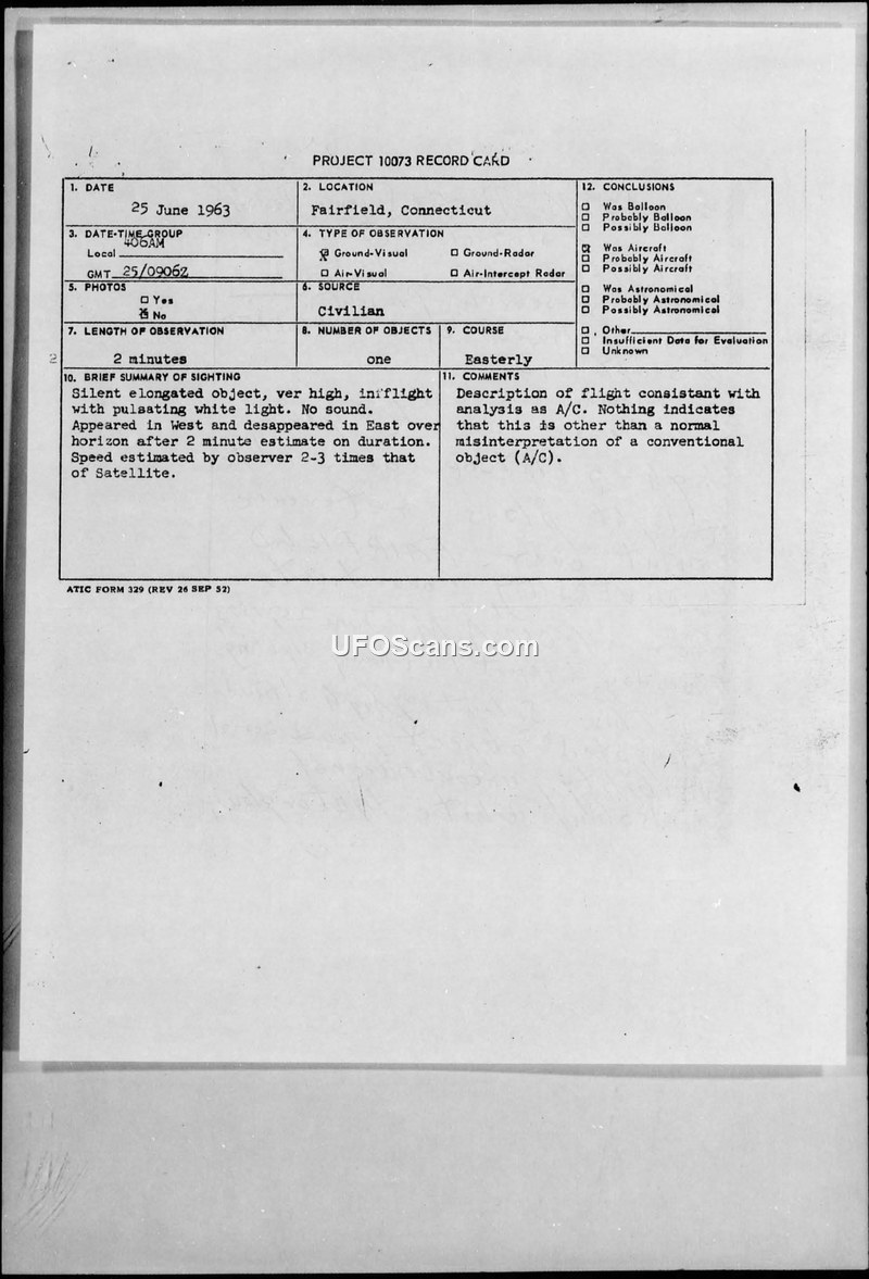 PROJECT 10073 RECORD CARD — Fairfield, Connecticut, 25 June 1963