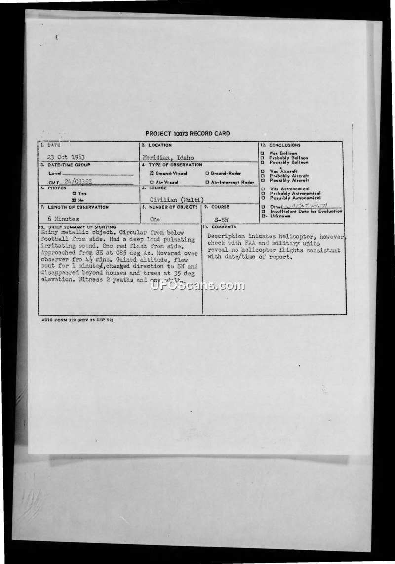 Project 10073 Record Card — Meridian, Idaho, 23 October 1963