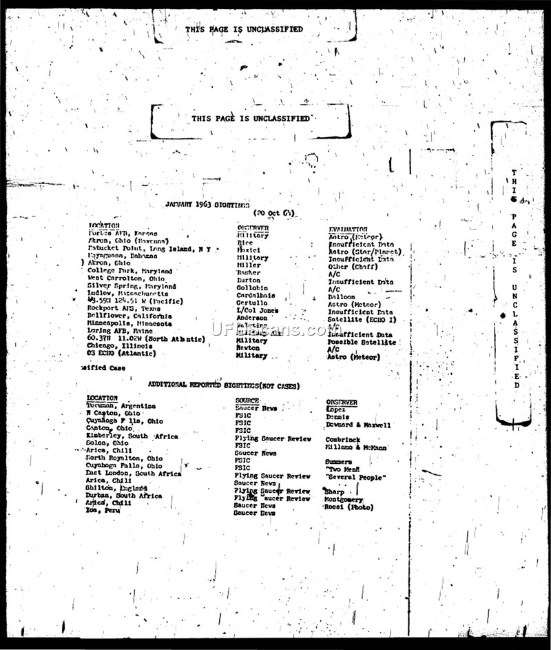 UFO/UAP Sighting Reports — January 1963 to December 1963