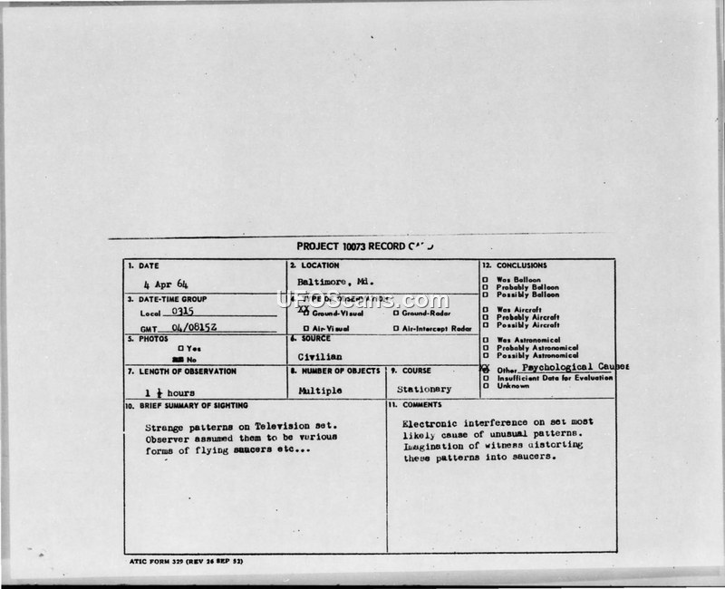 PROJECT 10073 RECORD - Baltimore, Md. - 4 Apr 64