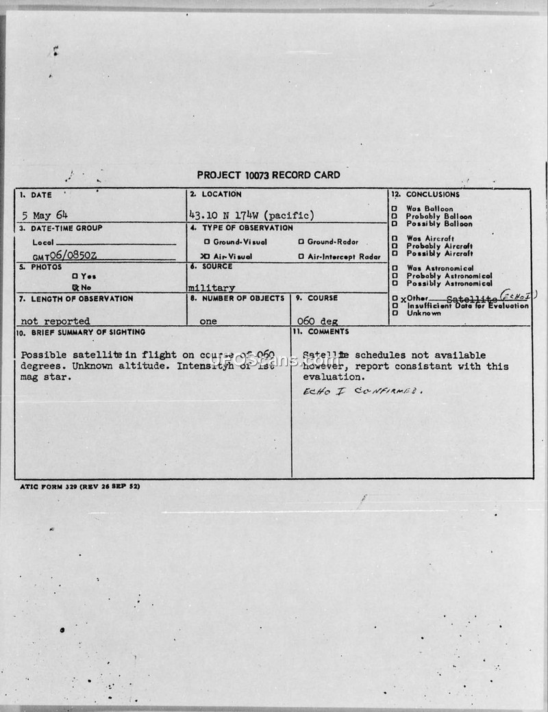 Project 10073 Record Card — 5 May 64 Sighting