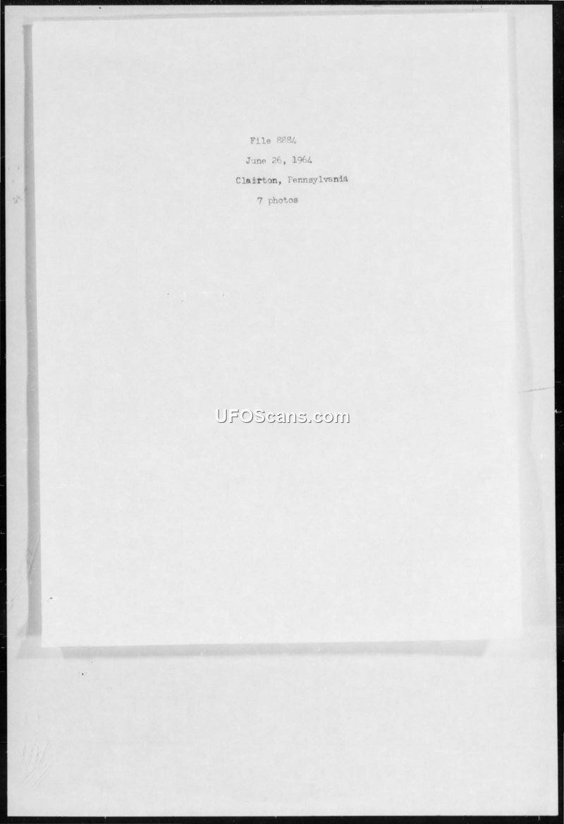 This document is a record of a 1964 UFO sighting in Clairton, Pennsylvania, filed by the Foreign Technology Division. It includes seven photographs of the reported phenomenon.