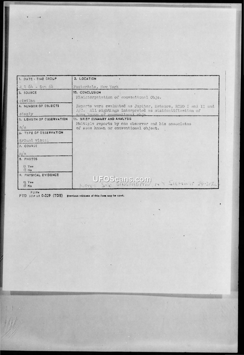 UFO Sighting Reports and Correspondence — Fosterdale, New York, 1964