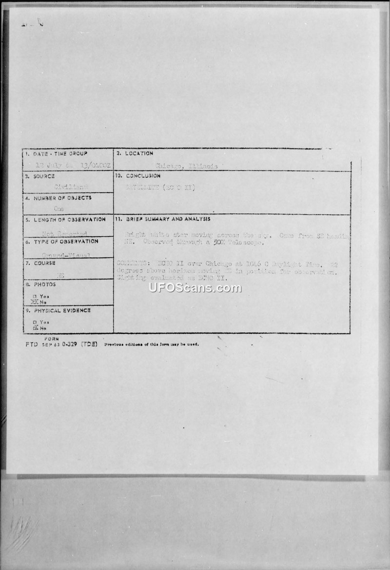 UAP Sighting Report — Chicago, Illinois, July 1964