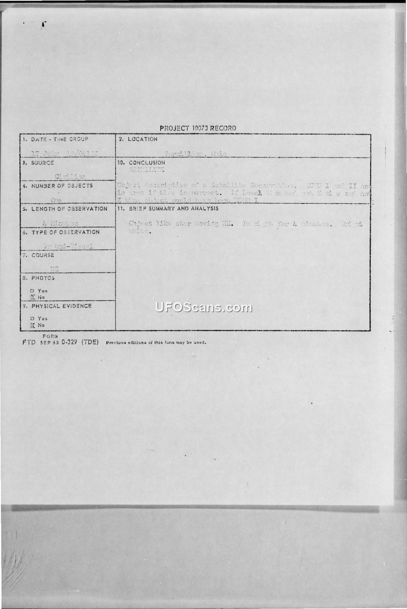 Project 10073 Record — Vermillion, Ohio, July 1964