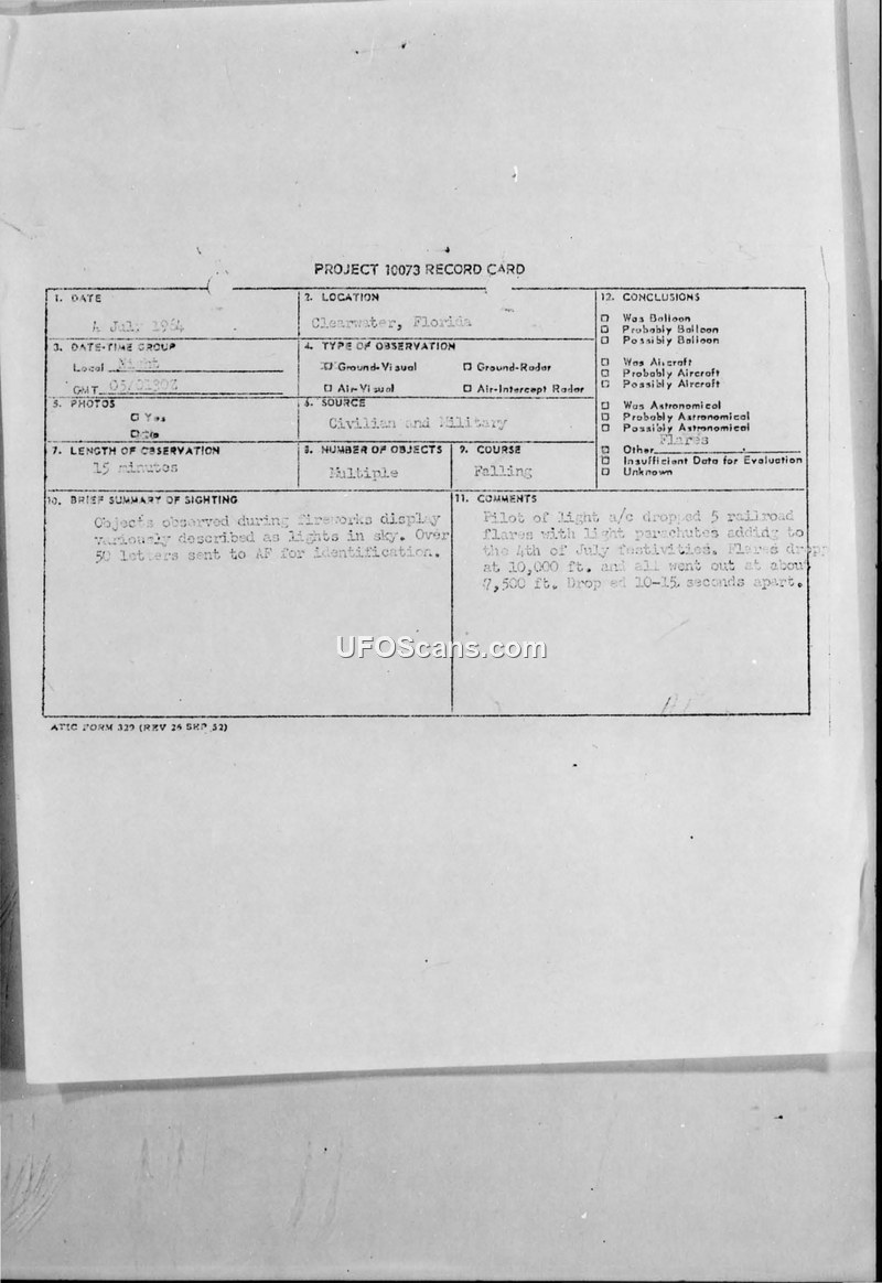 Project 10073 Record Card — Clearwater, Florida, 4 July 1964
