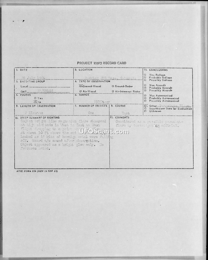 Project 10073 Record Card — Buckley Air Base, Colorado, July 1964