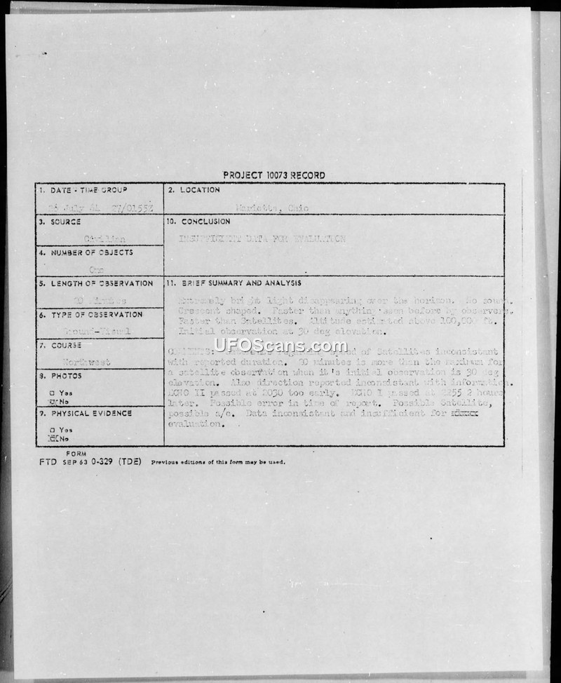 Project 10073 Record — Marietta, Ohio, 26 July 1964