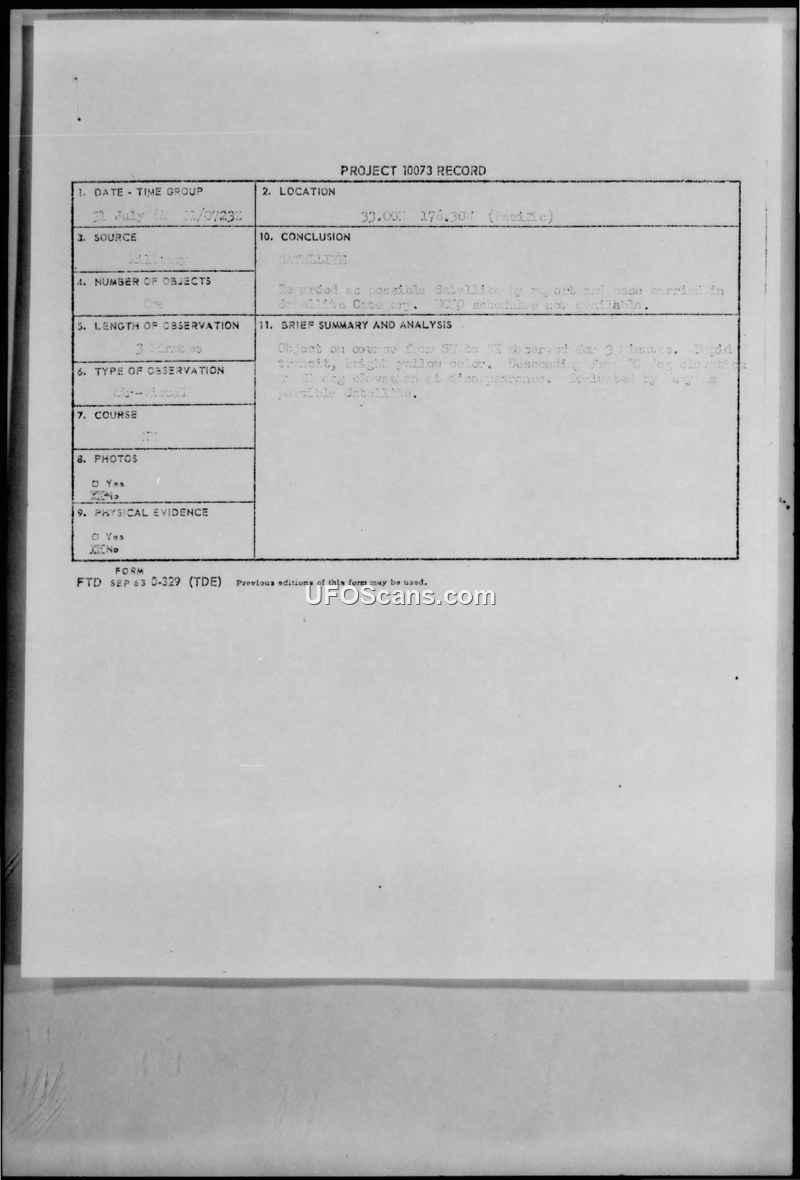 Project 10073 Record — 1 July 1964 Sighting
