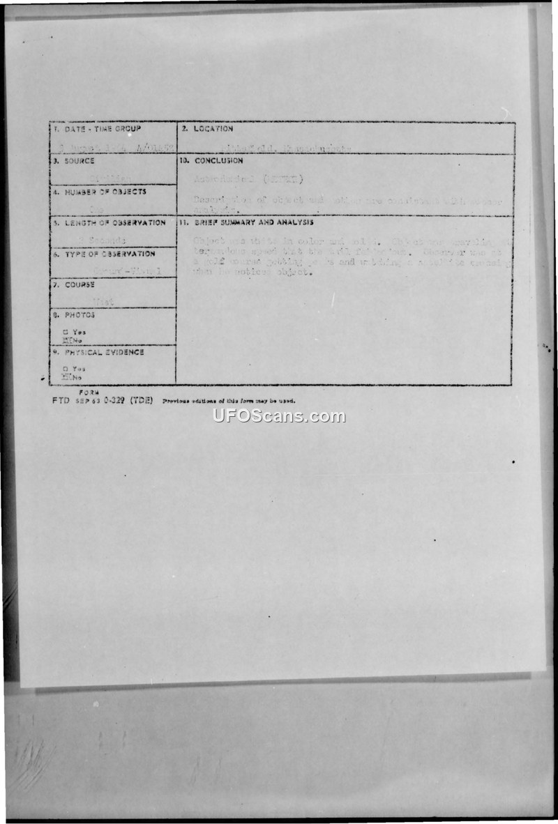 U.S. Air Force Technical Information Sheet - Sighting Report, August 8, 1964