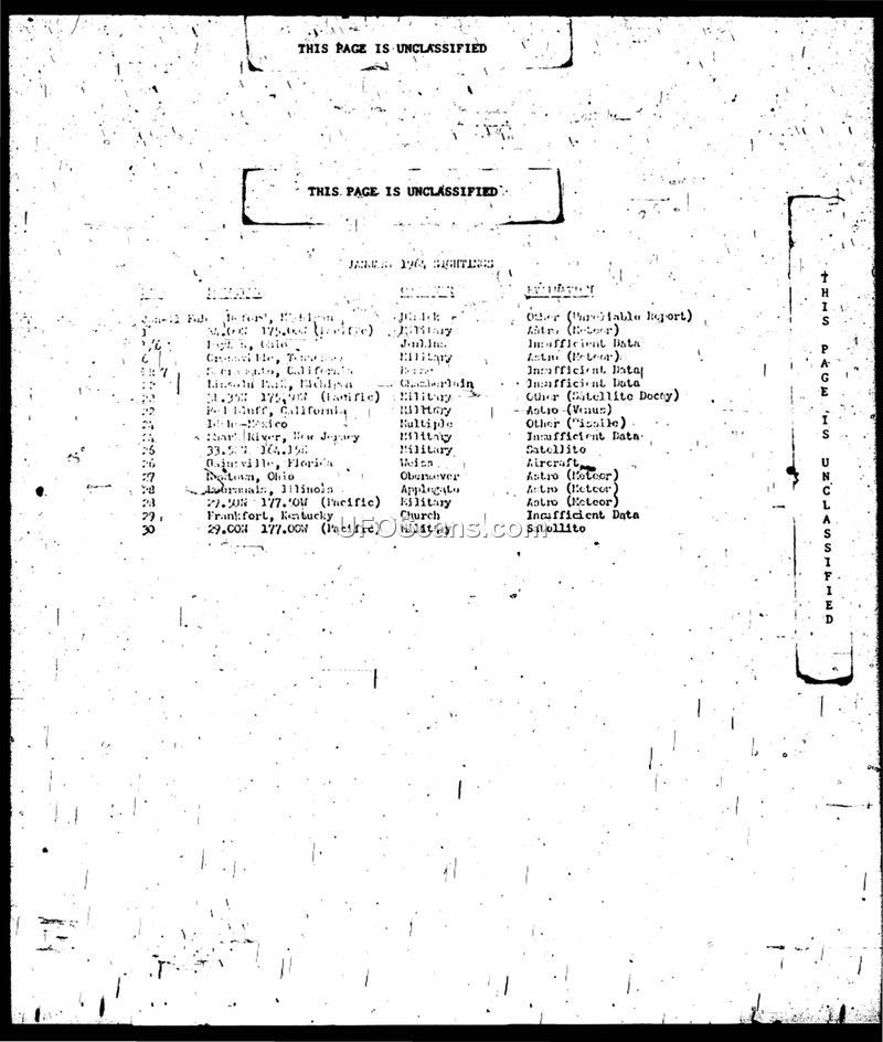 Monthly Sightings Reports: January 1964 – December 1964