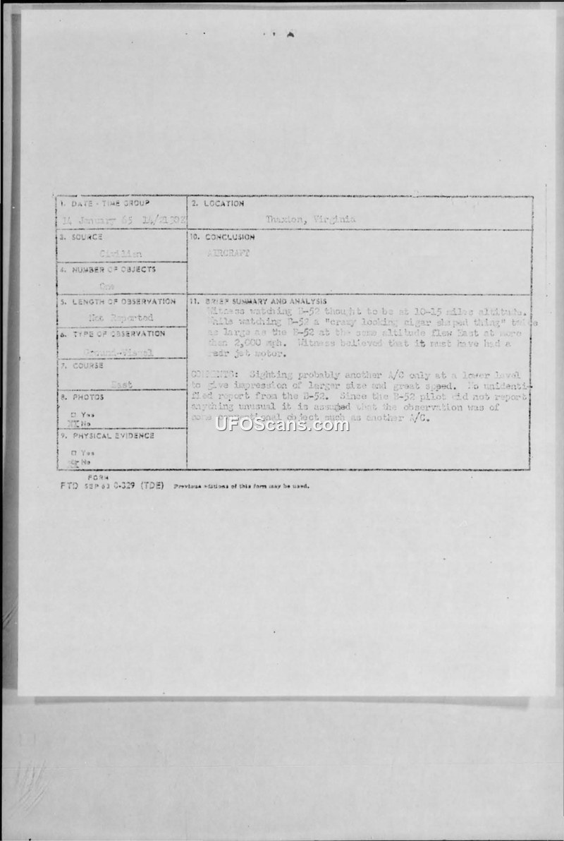 Sighting Report — Thaxton, Virginia, January 14, 1965