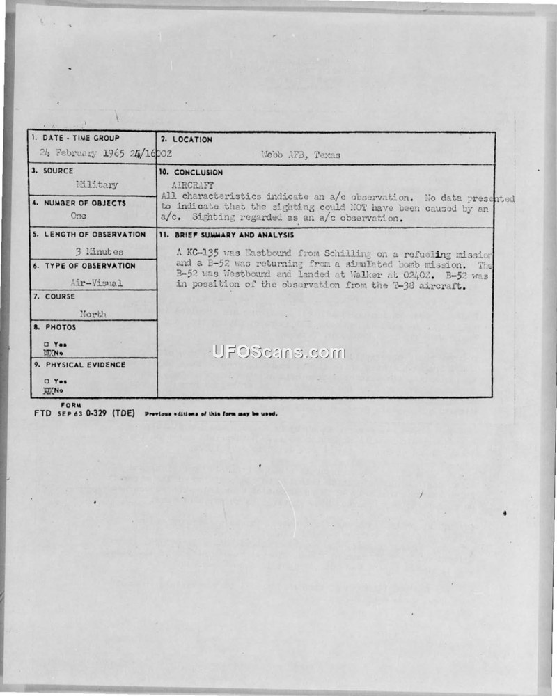 UFO Investigation Report — 24 February 1965, Webb AFB, Texas