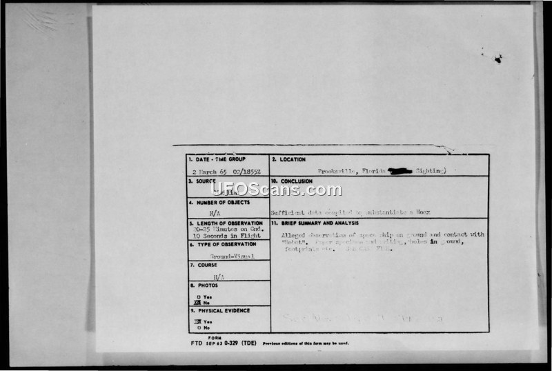 UFO Sighting Report — Brooksville, Florida, 2 March 1965