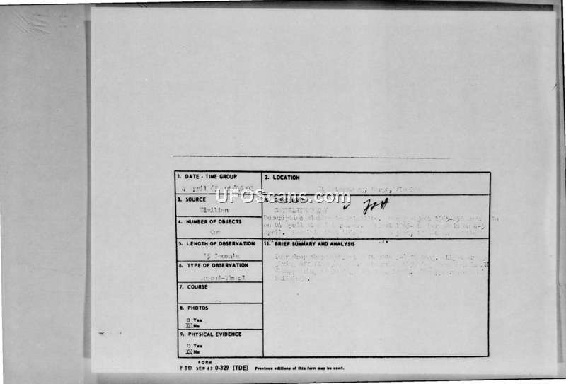UFO Sighting Reports and Correspondence — April 1965