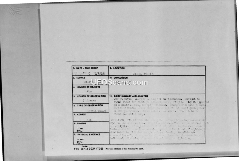 UFO Sighting Report — Miami, Florida, April 25, 1965