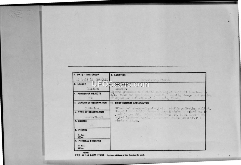 UFO Sighting Report — Winter Park, Florida, 29 April 1965