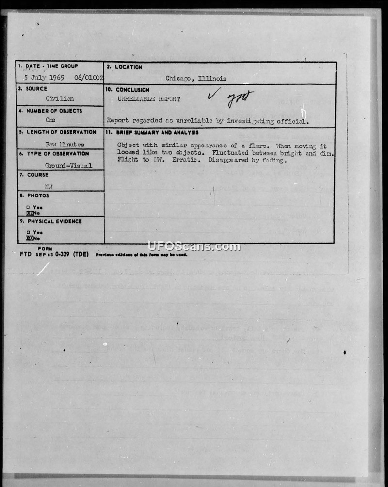 UFO Sighting Reports and Correspondence — Chicago, Illinois, July 1965