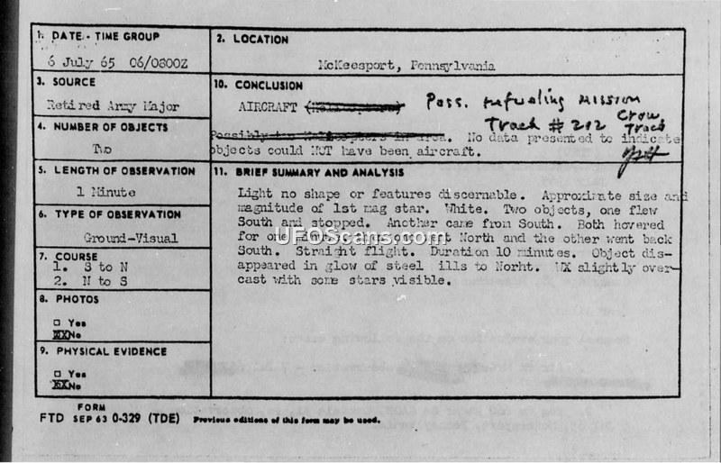 UFO Sighting Report — McKeesport, Pennsylvania, 6 July 1965