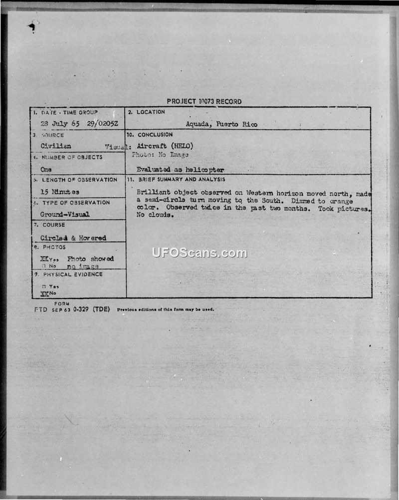 Project 10073 Record — Aquada, Puerto Rico, 23 July 1965