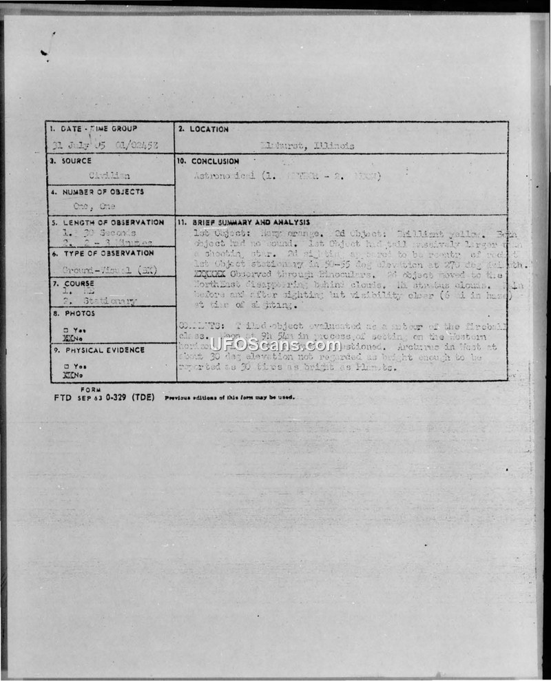 AFRO Bulletin: UFO Sightings Report, July 1965