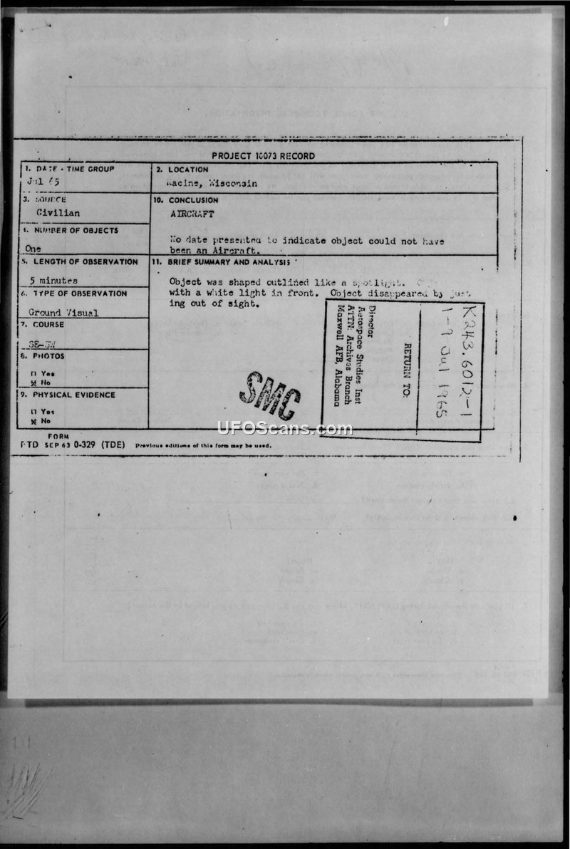 Project Blue Book Sighting Reports: Racine, Wisconsin and Normal, Illinois