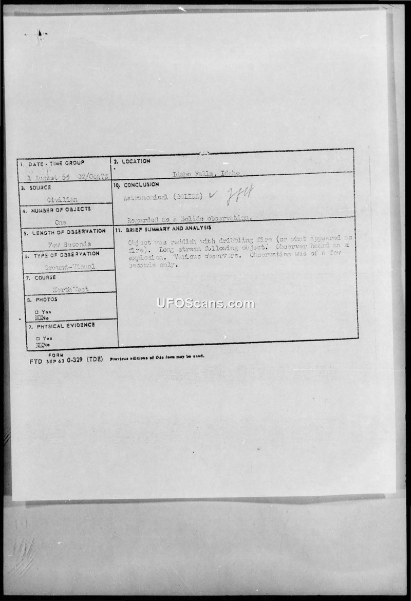 UFO Sighting Report — Idaho Falls and Pocatello, Idaho, August 1, 1965